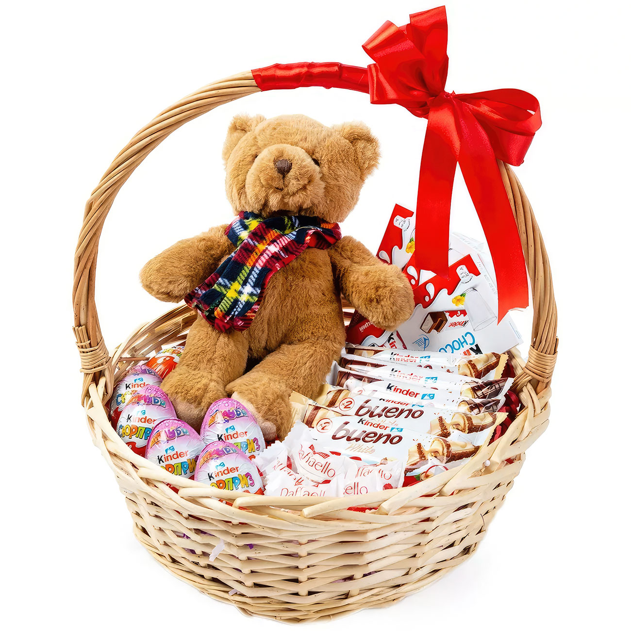 Киндер сюрприз, конфеты рафаэлло, киндер шоколад, мягкая игрушка. Упаковка (Корзина, оазис, ящик).
