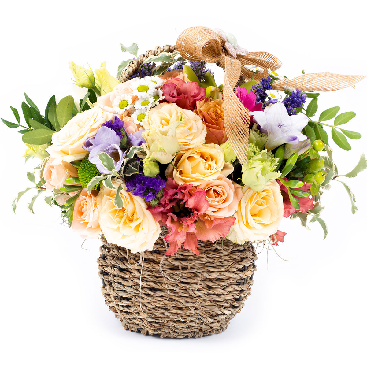 Корзина с цветами «Нектарные аккорды» с доставкой по г Радужный (Владимирская обл): вы можете заказать букет в цветочном интернет-магазине «Флормания» по цене от 3190 руб.