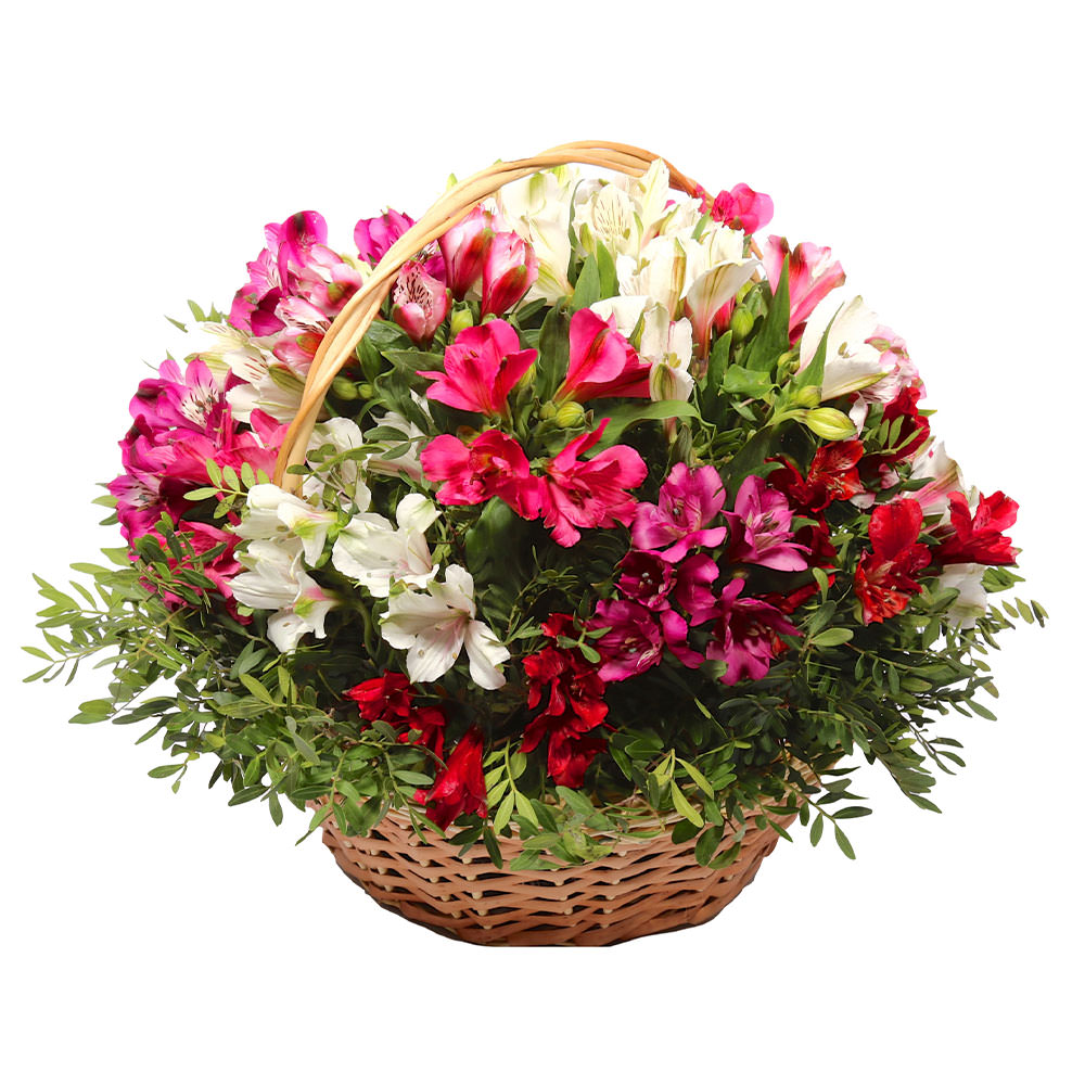 Цветы в корзинке «Краски альстромерий» с доставкой по г Радужный (Владимирская обл): вы можете купить букет в цветочном супермаркете «Флормания» по цене от 3190 руб.