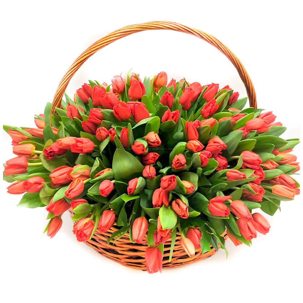 Цветы в корзинке «Красные тюльпаны» с доставкой по г Радужный (Владимирская обл): вы можете заказать букет в цветочном гипермаркете «Флормания» по цене от 3190 руб.
