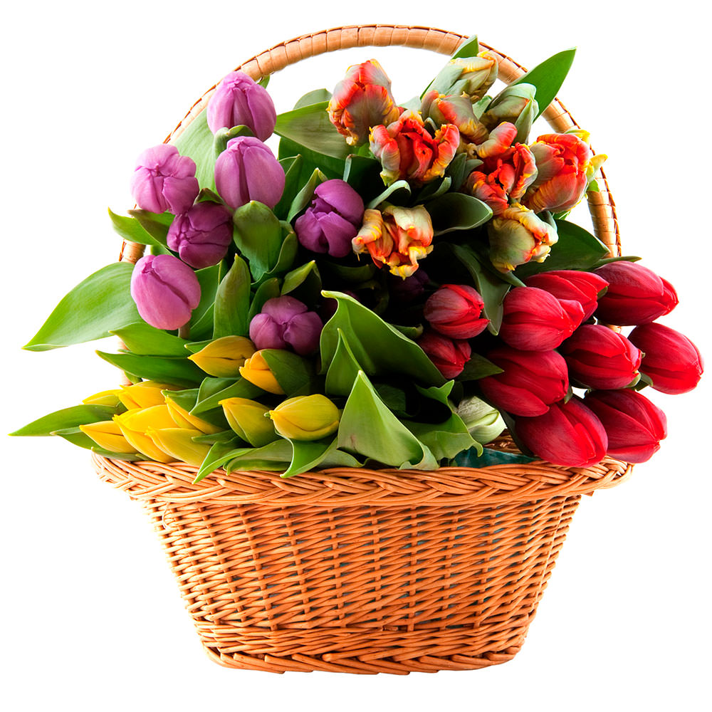 Цветы в корзинке «Микс тюльпанов» с доставкой по г Радужный (Владимирская обл): вы можете купить букет в цветочном салоне «Флормания» по цене от 3190 руб.